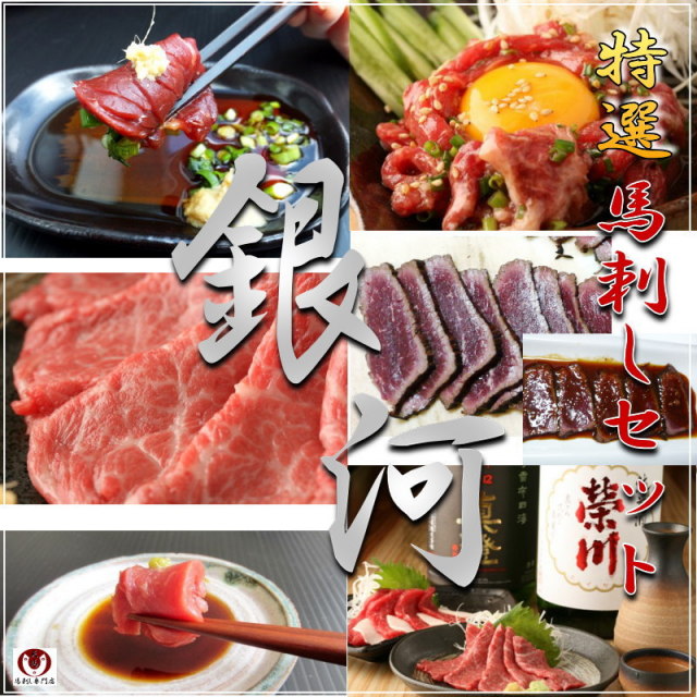 1.中霜降り馬刺し(中トロ) 130g 2.会津馬刺しもも 130g 3.馬刺しロース 130g 4.馬タン燻製 200g 5.桜ユッケ50g |