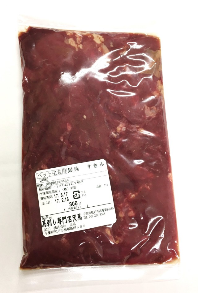 ・鉄分の多い馬肉は空気に触れると特性上、黒っぽく変色しやすいですが、品質に問題はございません